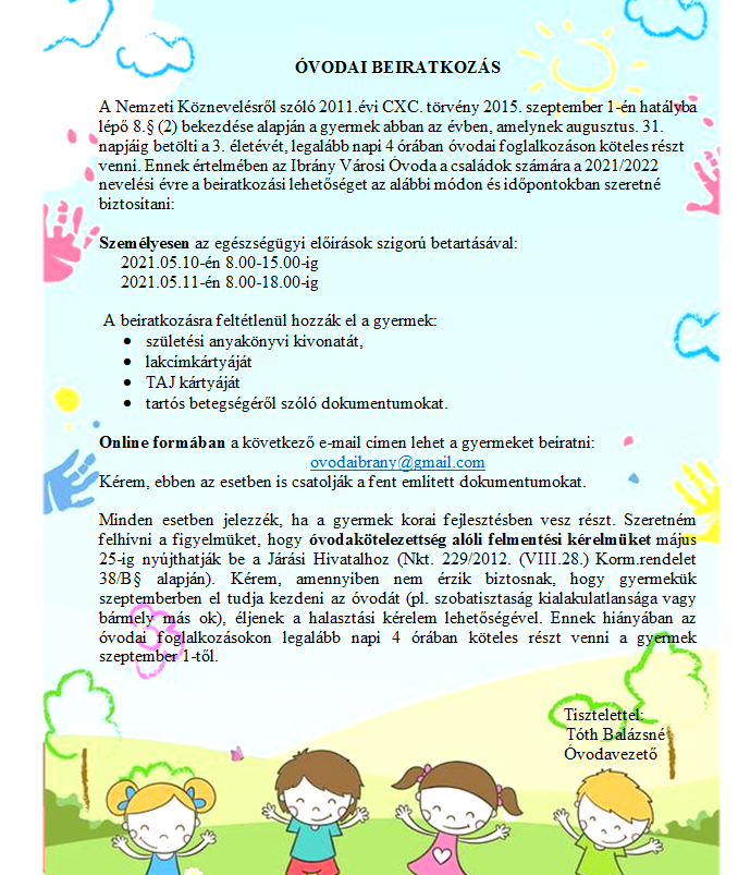 Óvodai beiratkozás 2021.