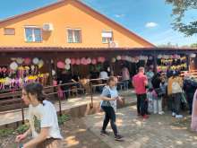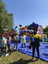 Reggel közösen ðíszítettük lufikkal az óvoda teraszát, ezt követően közös tornára, vizuális tevékenységre, ugrálóvárak birtokbavételére,szabadtéri játékokra, csillámtetoválásra volt lehetőség!