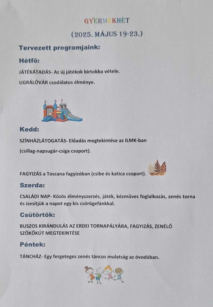 Gyermek Heti programjaink! 2025. Május 19-23.